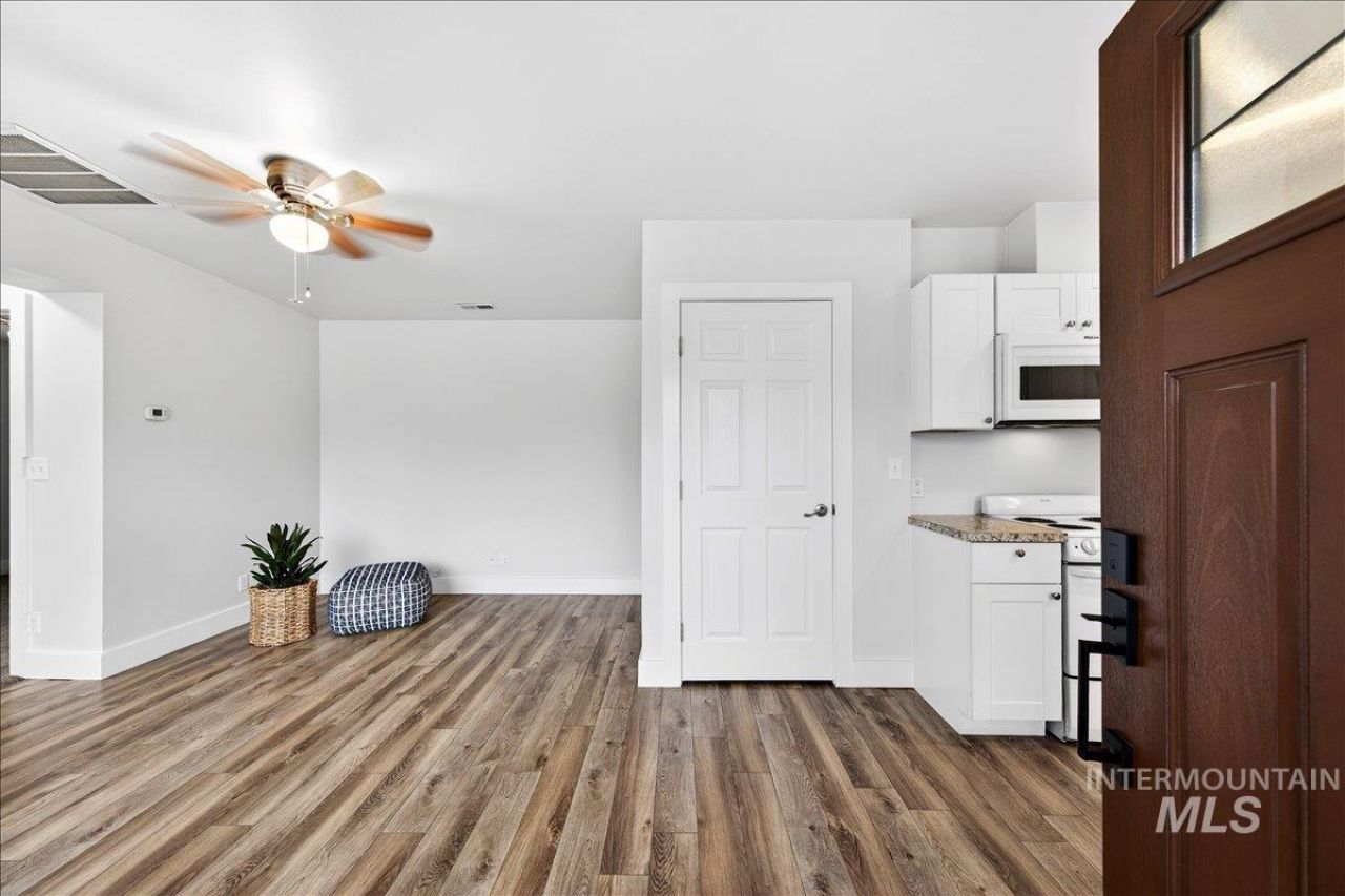 This home is such a cutie! Located right in the sweet spot of the Boise Bench, minutes from downtown, BSU, and the airport, this adorable 1950s bungalow is the perfect retreat for minimalist living, as a starter home, or for the savvy investor. Sitting on a corner lot with two distinct yard spaces, one fully fenced (with pet access) and a generous carport with a stone fireplace begging to be restored (pizza oven?!), this 2-bedroom, 1-bath home feels both spacious and homey. Mid-century charm is balanced with desirable upgrades, including a newer roof, HVAC, water heater, flooring, windows, and brand new interior paint and a new front door. Two built-in storage sheds add space for tools and toys, and a Samsung stackable washer and dryer (to be reinstalled; removed for painting) make this a true turn-key home.